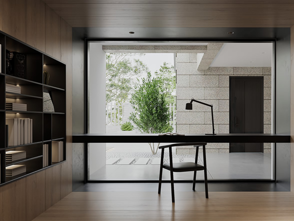 客廳的設(shè)計(jì)以高級(jí)灰作為主要元素,充分的利用戶型和室外的光影結(jié)合,運(yùn)用下沉式的設(shè)計(jì)手法,結(jié)合園林屏風(fēng)的元素構(gòu)建,營(yíng)造出一處宜賞宜居的會(huì)客公共空間